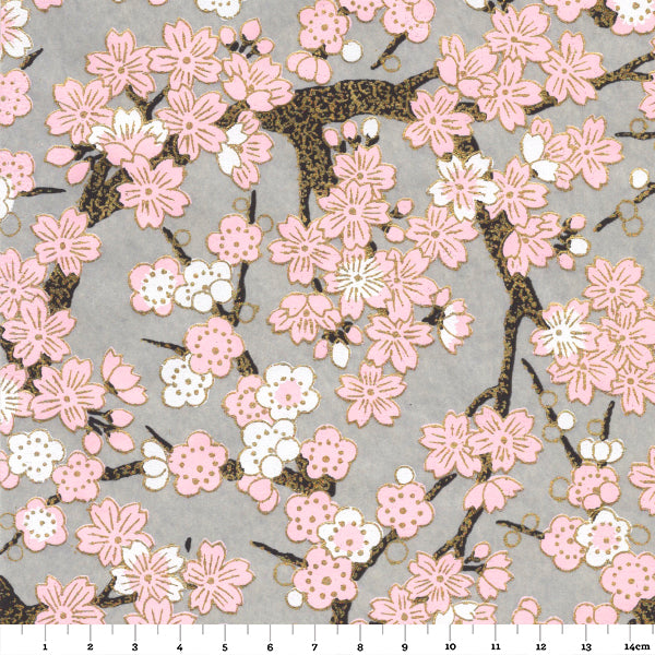 - Référence du papier : papier japonais fleurs gris et rose M360