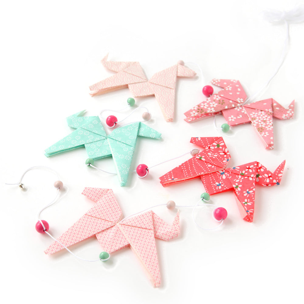 Cette jolie guirlande de 5 pliages de chevaux en papier japonais dans les tons roses et vert d'eau sera idéale pour décorer un coin de fenêtre, habiller délicatement une pièce ou encore apporter de la douceur à une chambre d'enfant ...