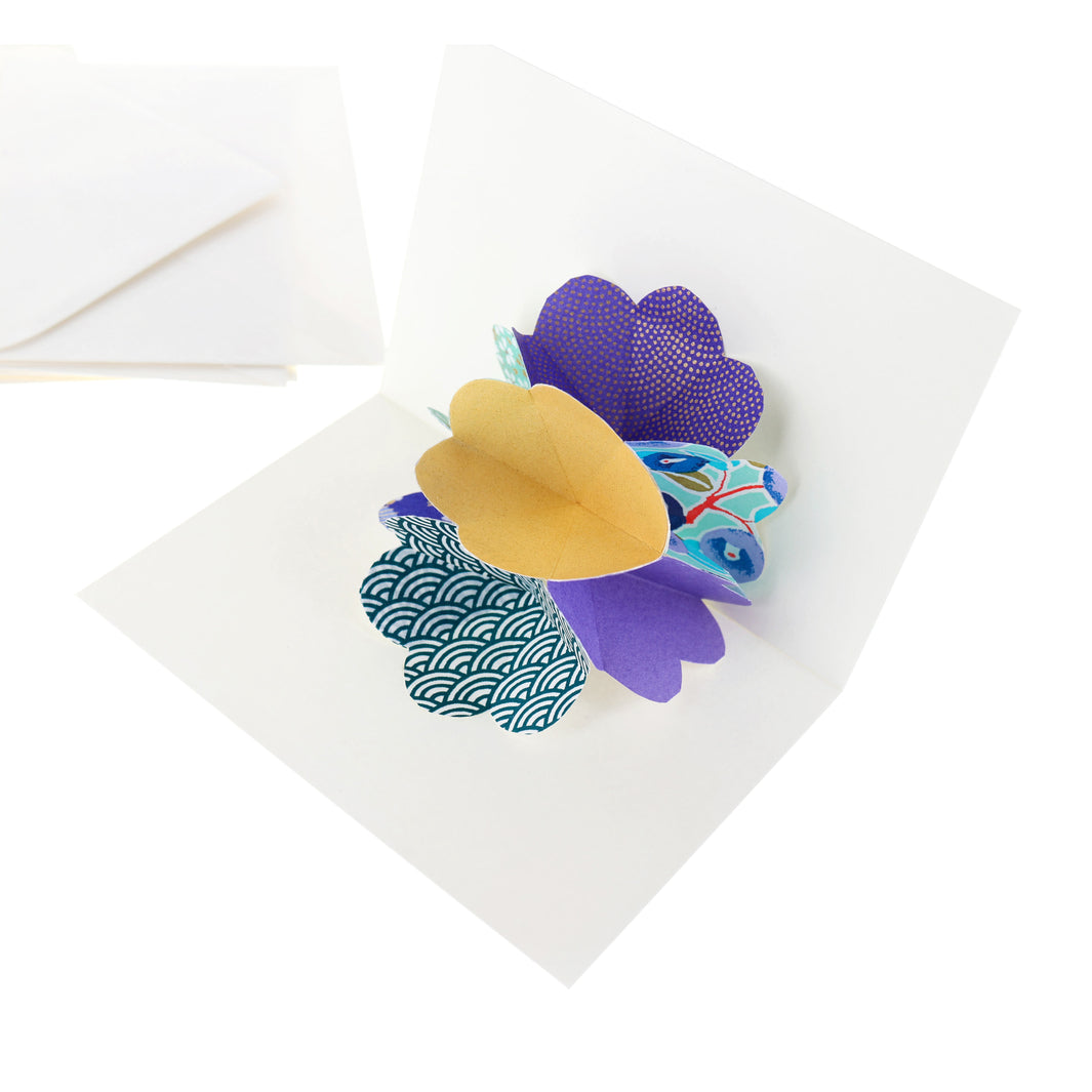 Kit 4 Cartes Pop-Up - Vert d'Eau, Bleu Foncé, Violet et Or - Fraîcheur