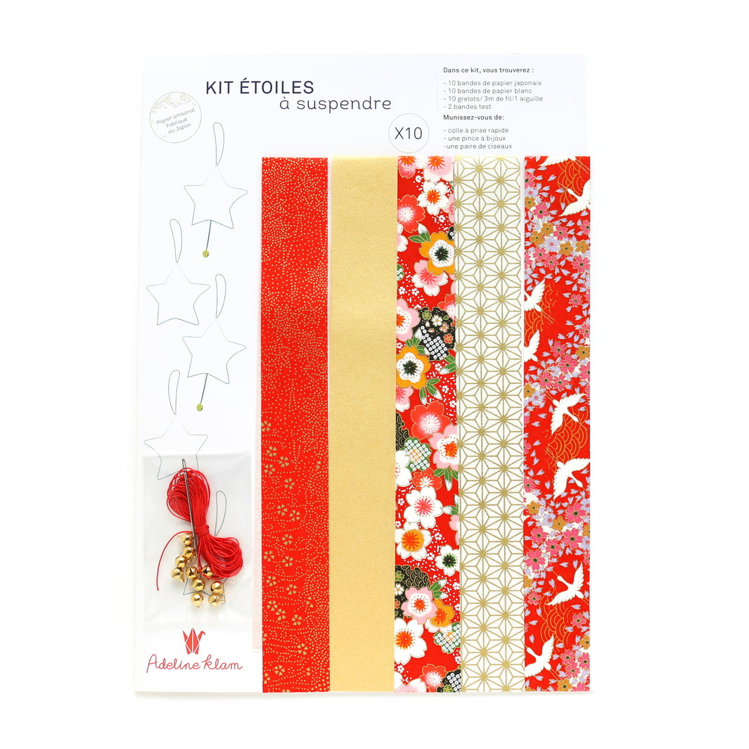 Ce kit vous apprend à réaliser 10 grosses étoiles à suspendre dans les tons rouge orange, blancs et dorés de la gamme « Rubis » imaginé par Adeline !