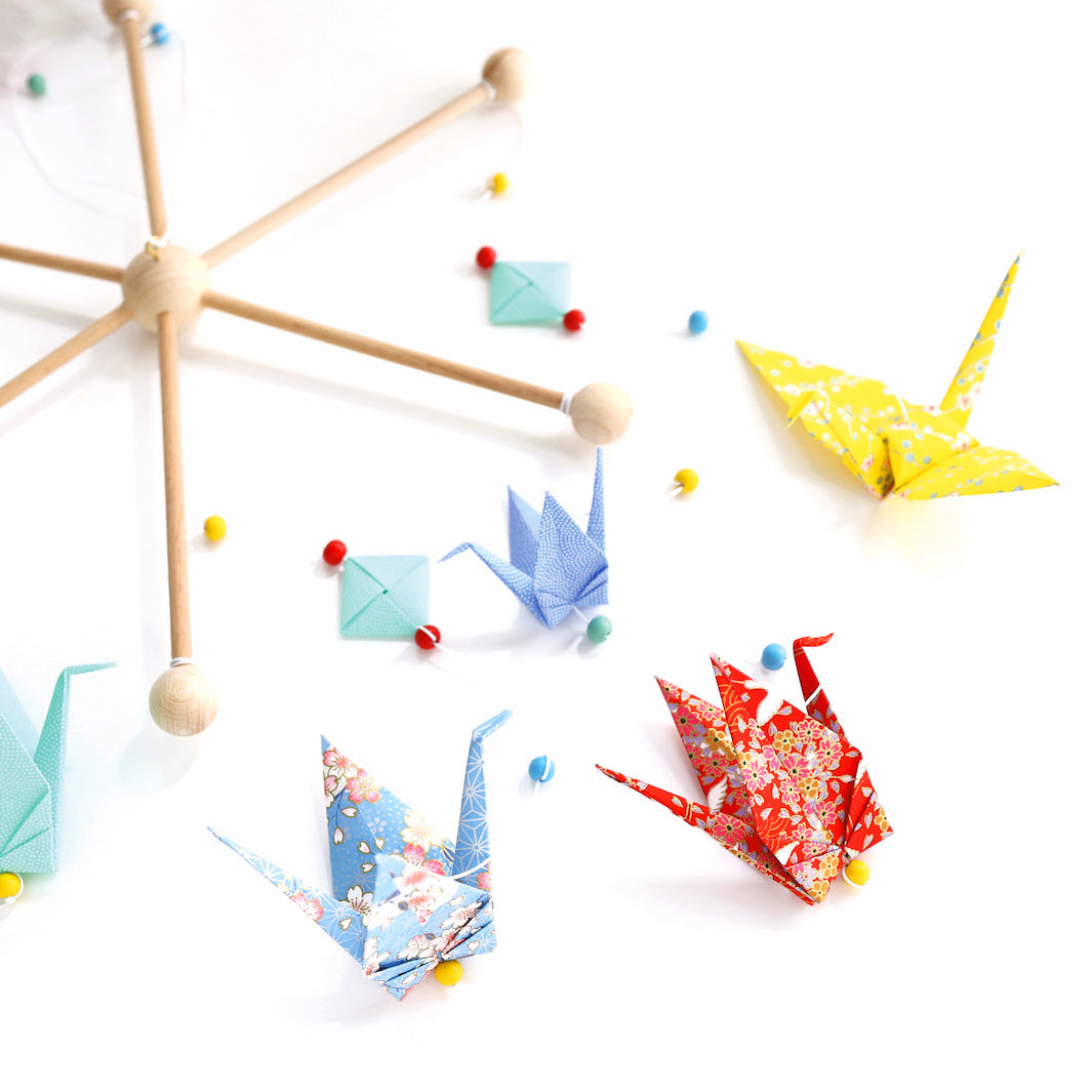 Une fois réalisée, ce mobile viendra décorer délicatement une chambre d'enfant ! Découvrez nos autres kits mobiles de grues et kits créatifs d'origami en boutique et sur le e-shop.