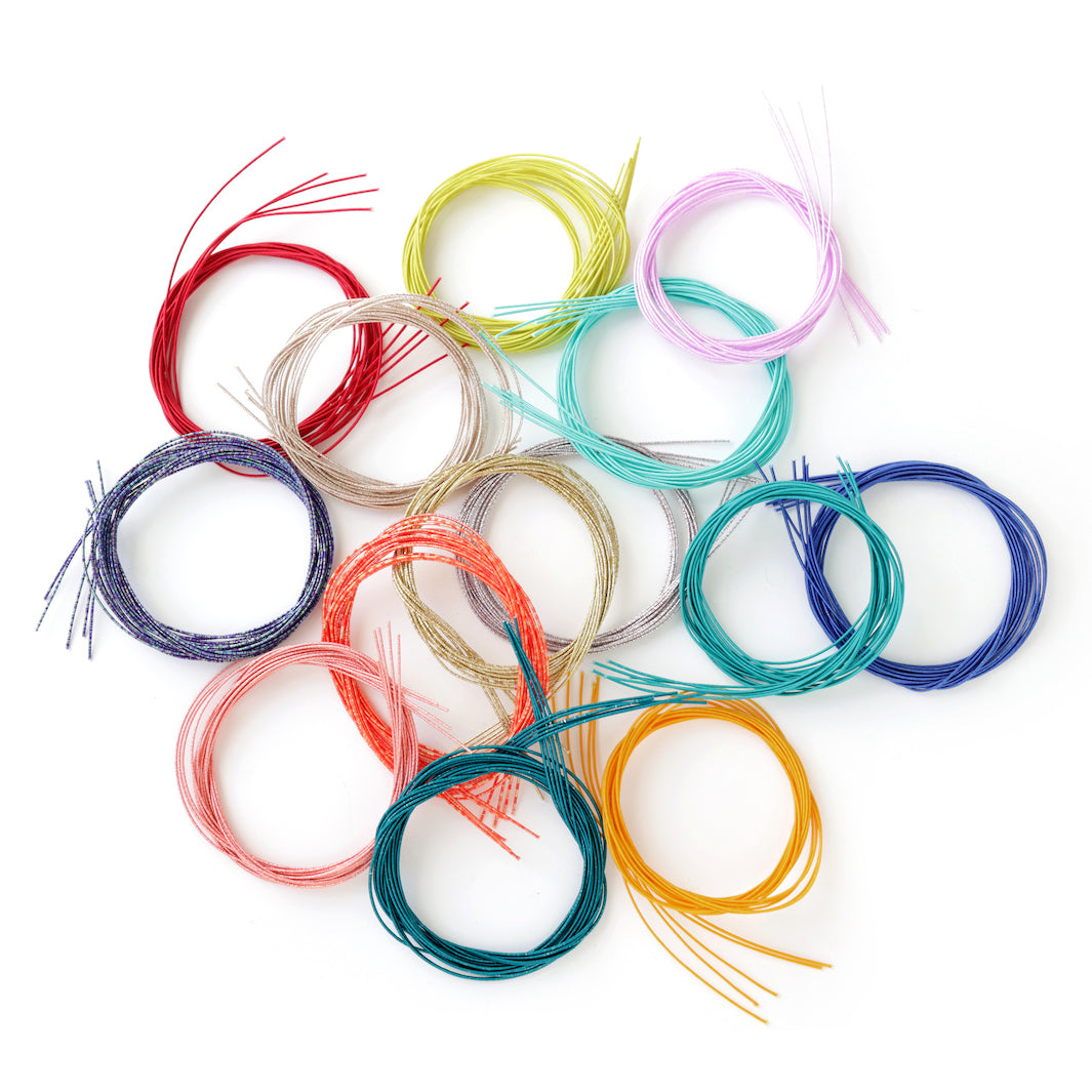Ces différents lots contiennent 5 tiges souples en papier japonais mizuhiki dans des tons de vert d'eau, de vert menthe et de bleu canard.