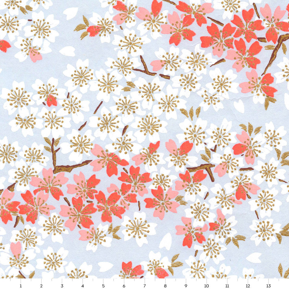 Papier Japonais - Fleurs de Cerisier - Bleu Ciel et Rose - M655