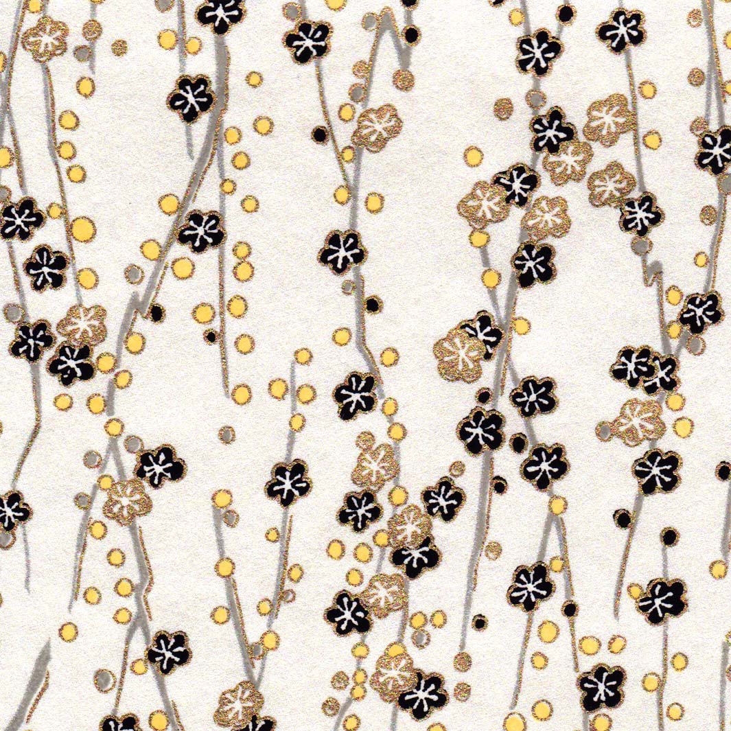 Papier Japonais - Branche en Fleurs - Blanc Crème, Noir et Or - M570