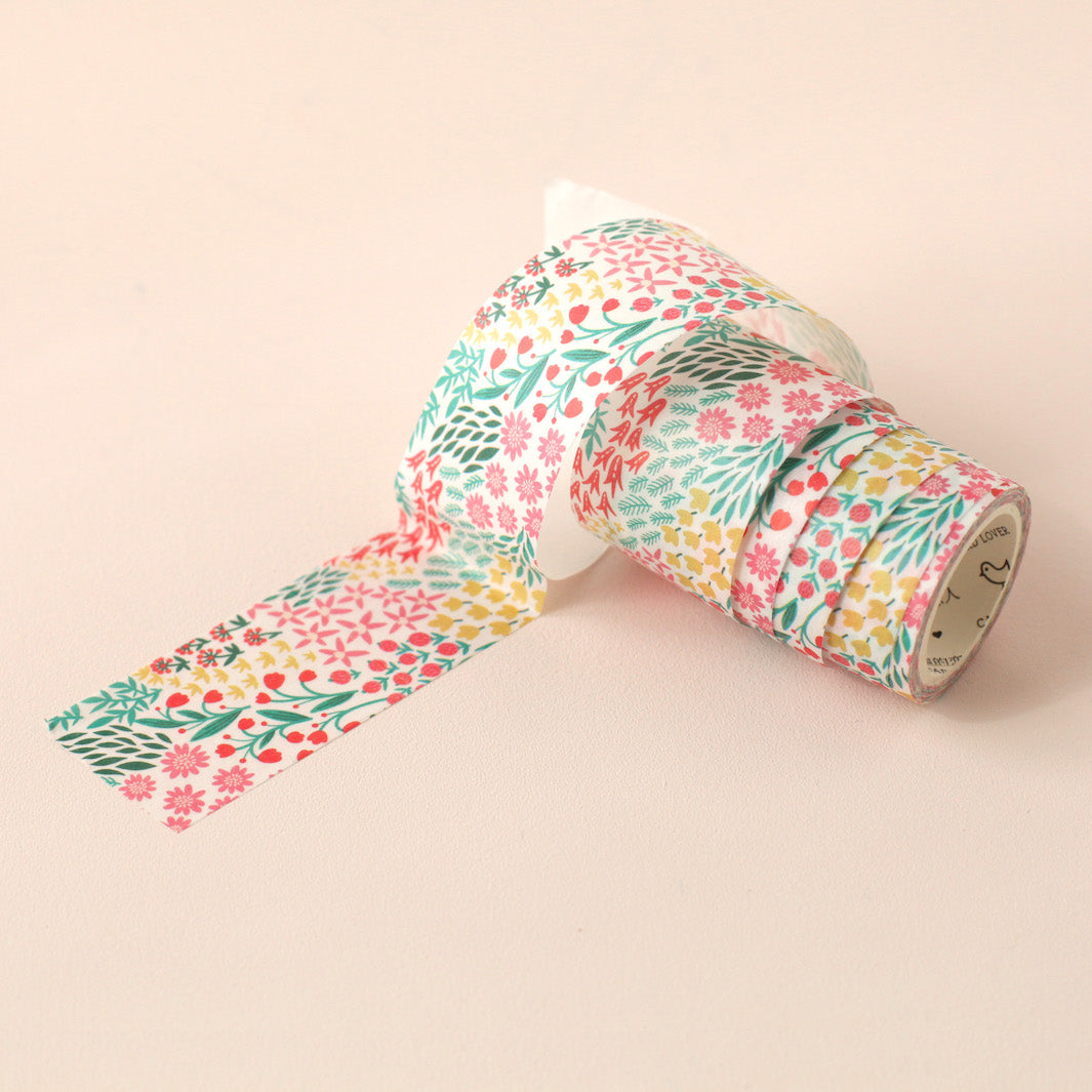 Joli ruban adhésif large repositionnable aux motifs fleuris. Idéal pour décorer et customiser courriers, carnets ou encore paquets cadeaux !